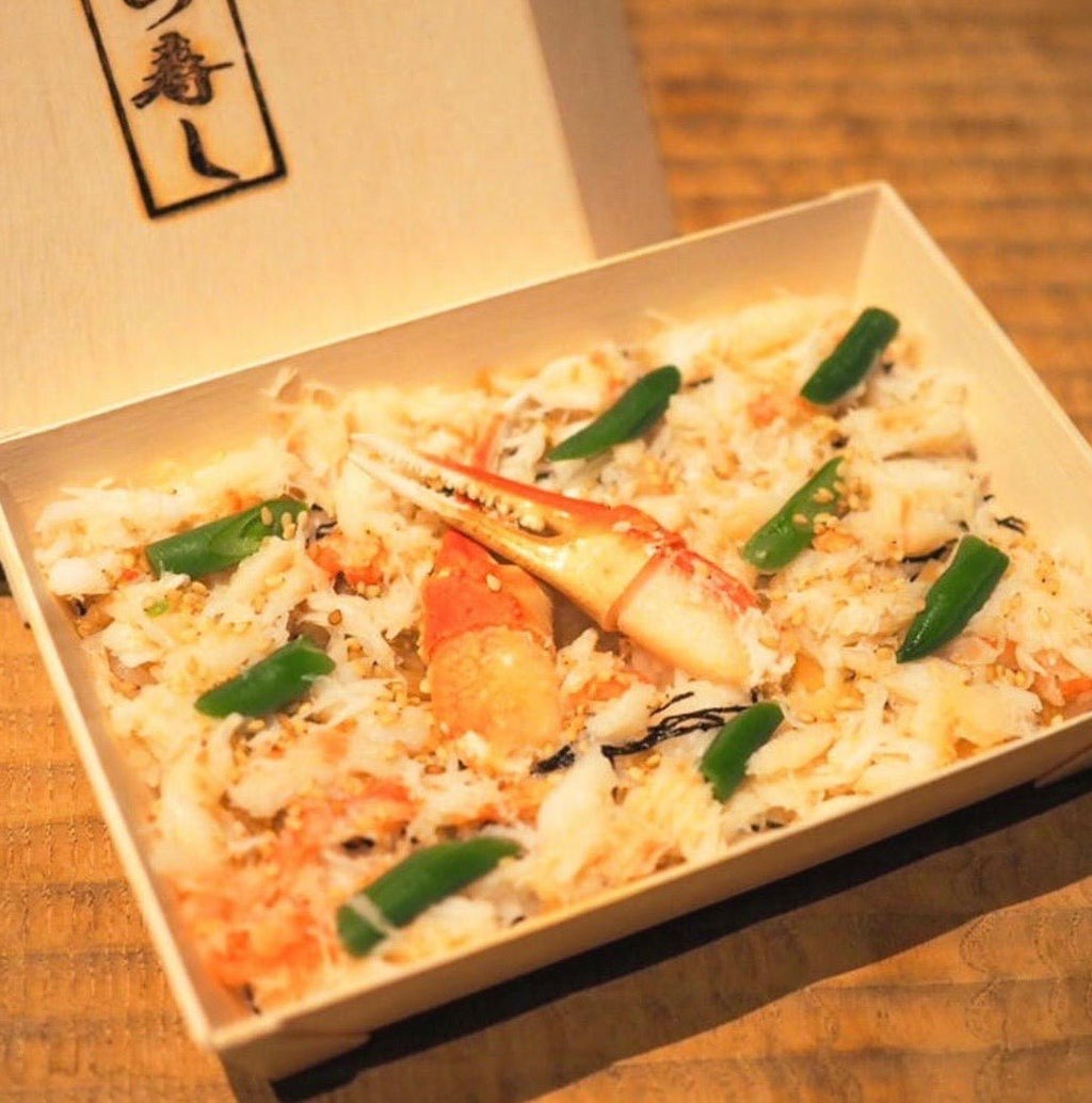 世界最高米で作った世界最高の寿司。本ズワイ蟹の身、蟹爪を使用。蟹好きさんにはたまらない、解凍すると蟹の香りがいっぱいに広がります。