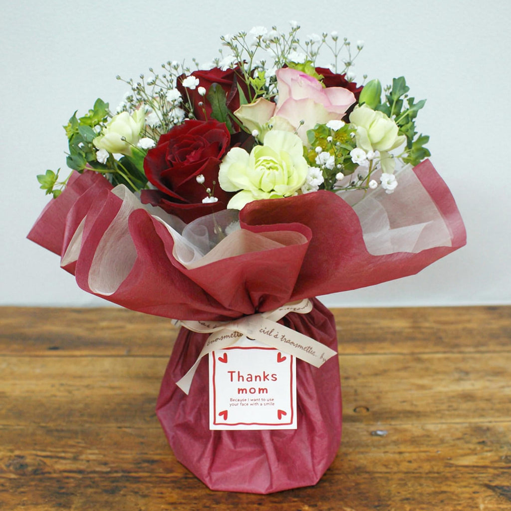 赤カラーのラッピング/母の日カード付き