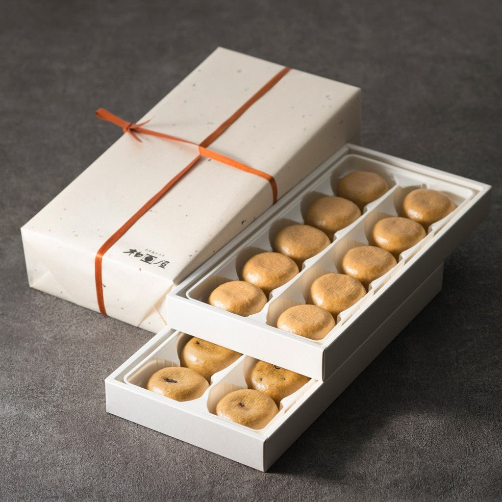「こしあん」と「つぶあん」の段詰合せ。ぬくもりあふれる、かす紙でお包みいたします。