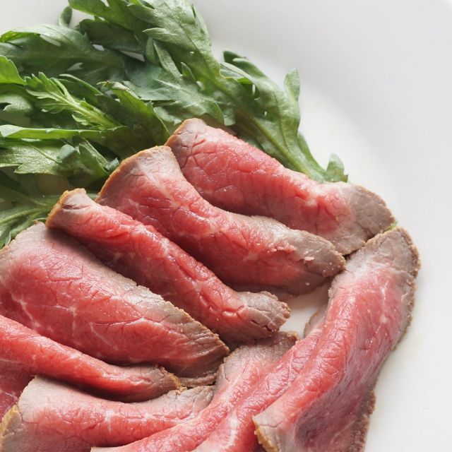 低温でじっくり火を通すことで、赤身の旨みと脂のコクが絶妙に調和し、しっとりとした口あたりに仕上がります。