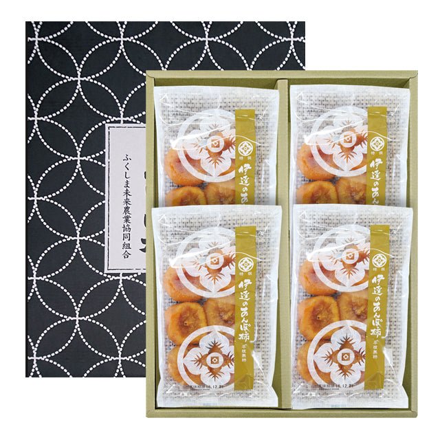 「伊達のあんぽ柿」は100年以上の歴史と伝統があります。原料となる柿の外皮を丁寧に剝いてから硫黄燻製し、ゆっくりと長い期間を掛けて熟成され、上品な甘味やトロリとした食感が冬の贈り物として大変人気の逸品です。